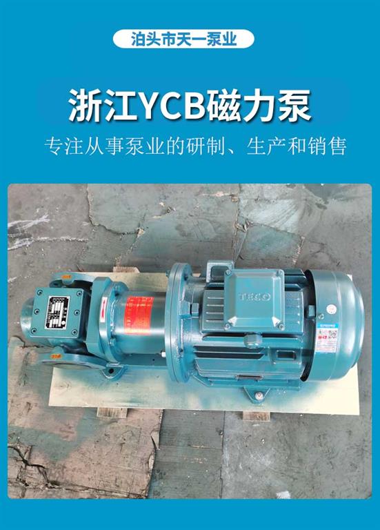 浙江YCB磁力泵广泛应用于石油、化工、食品、医药等领域,可输送润滑油、高粘度液体(粘度5-1500cSt)、气液混合物等。选型时需关注三大参数:流量范围0.6-80m³/h、额定压力0.6-2.5MPa、转速≤1450RPM。例如,石化行业输油系统常选用YCB8-1.6型(流量8m³/h,压力1.6MPa),而医药领域则偏好316L不锈钢材质泵体以确保没污染。安装时需水平布置,禁止空载运转,并配备过滤网防止固体颗粒进入,环境温度需控制在40℃以下。